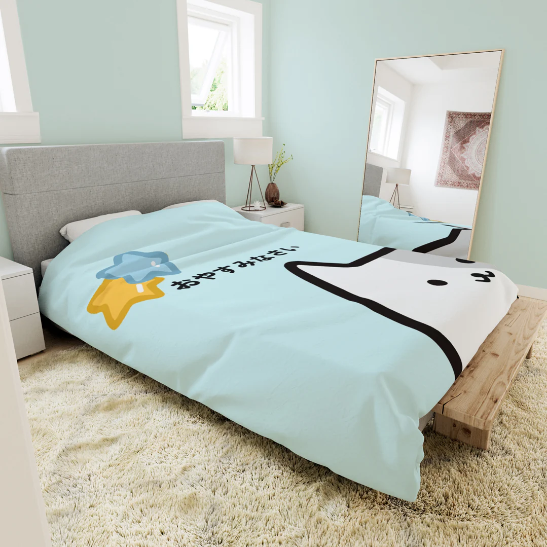 おやすみなさい ! Drift off to a night of good sleep snuggled in this Sweet Dreams Kitty Bedding Set. We love the simple but dynamic design, the lovable pastel colours!