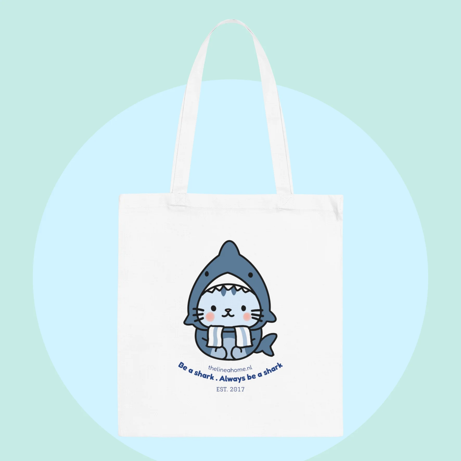 We're so excited to introduce to this series of Kitty Squad products ~ exclusive to The Linea Home! Say hello to our Kitty Shark Tote Bag featuring one of our kawaii mascots~ Sammie Shark Kitty. Sammie Shark has been one of the most popular designs at The Linea Home. We decided to give a kitty a cute shark onesie, fake it til you make it.Â