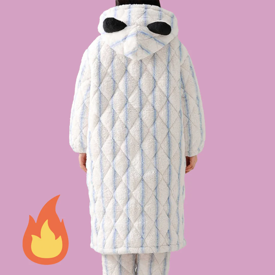 If you love cats, you are going to love it and anyone who wants to stay cosy while looking absolutely kawaii. Whether you’re lounging at home, reading a book, or enjoying a warm cup of tea, the Meowy Fluffy Robe & Pant Set is your go-to for ultimate comfort.