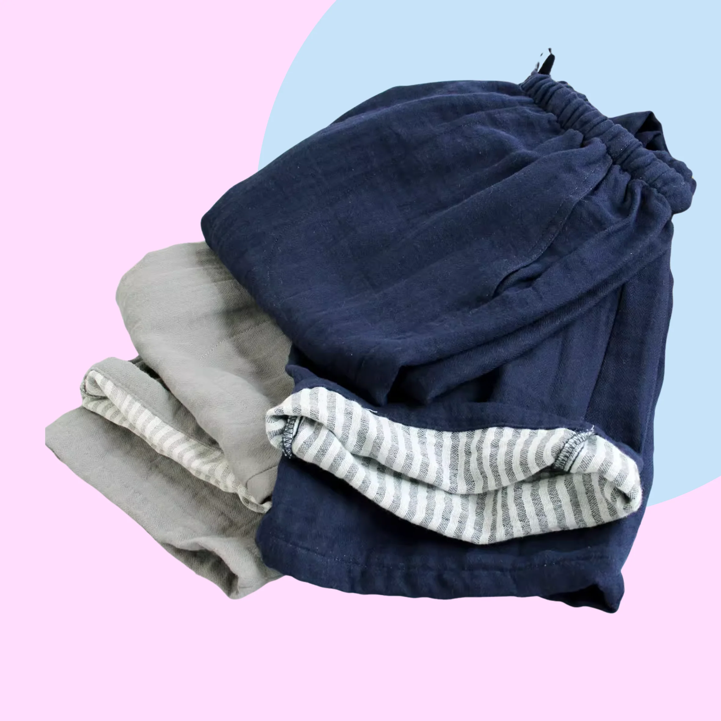 We are forever trying to widen our sizing ~ so here we are! The Muted Colour Cotton Pants have just hit The Linea Home shelves. We love the rich colour and then a popping and contrasting stripy upturn interior gives the pants just a lovely little hem detail.