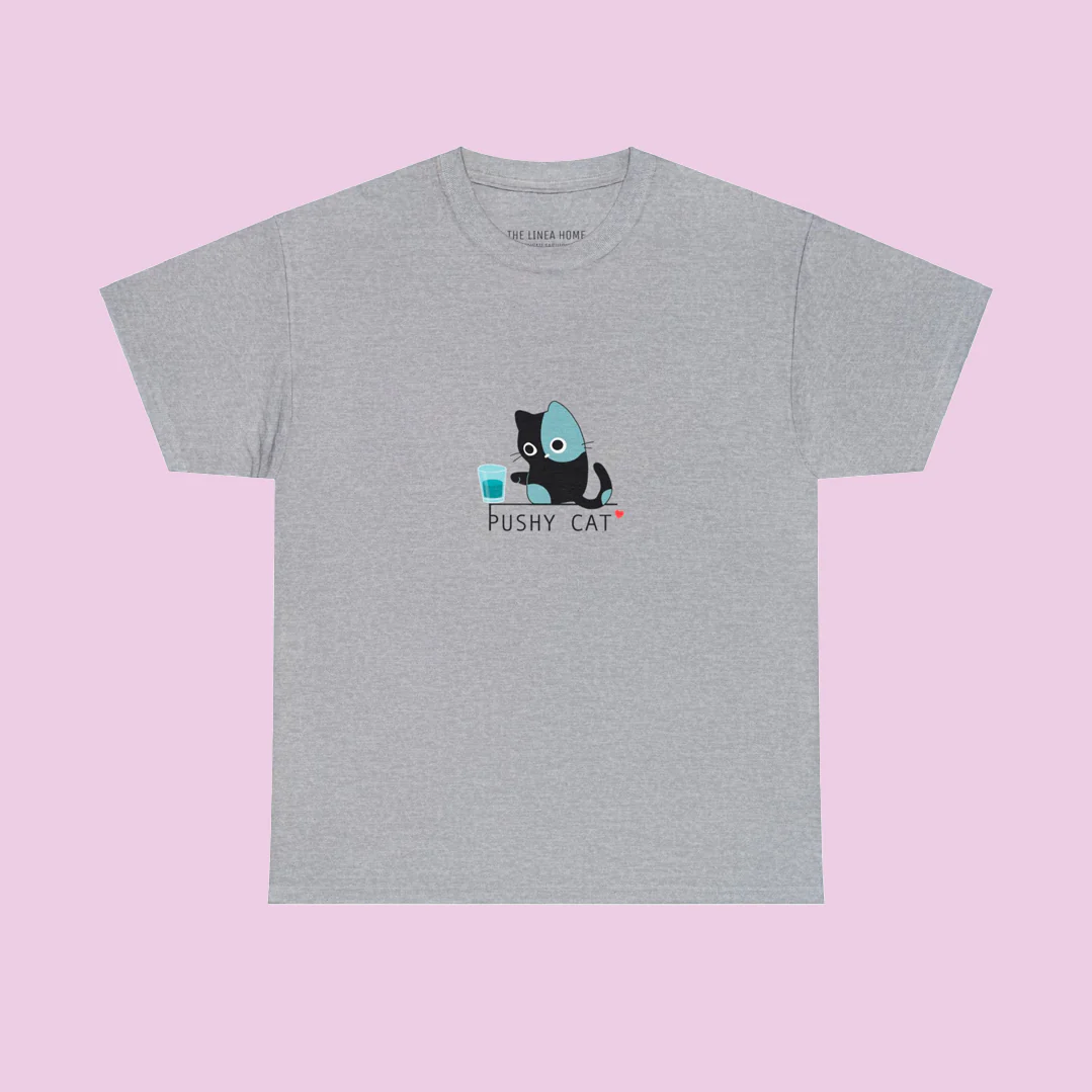 We all love cats for their cheekiness especially when they're just pushing things off the counter, Again! Well, we also love a good pun~ Fall head over heels with these Pushy Cat T-Shirts which captures just that. These T-shirts are made of soft and fluffy cotton.
