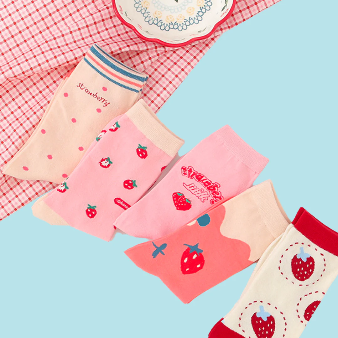 Add a pop of fun and quirky accent with these adorable Sweet Ichigo Pop Socks Set. This series have 5 individual kawaii ichigo strawberry designs to brighten your day. Grab your favourite pair or this product is on bundle offer, get all 5 to interchange for the week and grab yourself a huge discount.